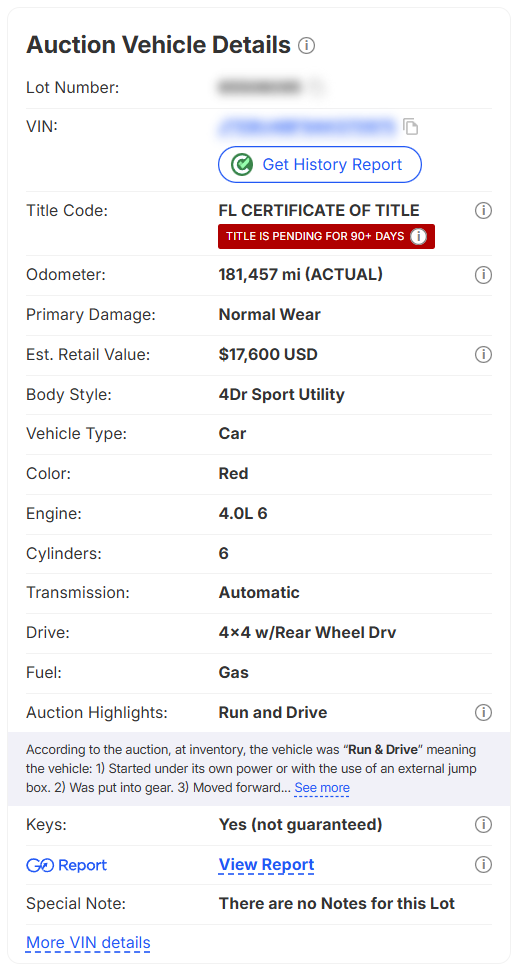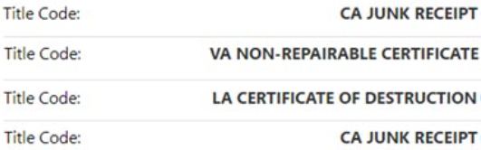 Estos son solo algunos ejemplos de documentos que no son elegibles para la exportación. Si está interesado en un vehículo específico, envíe el número de lote a export@autobidmaster.com y le informaremos si funciona.
