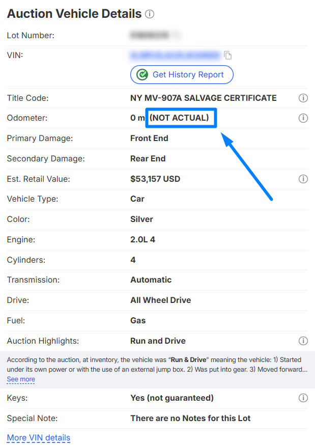 “Non Actual” означает, что показатели одометра не точны или не могут быть определены.